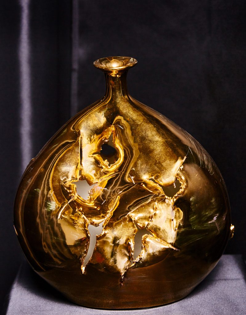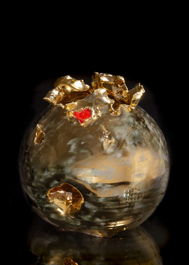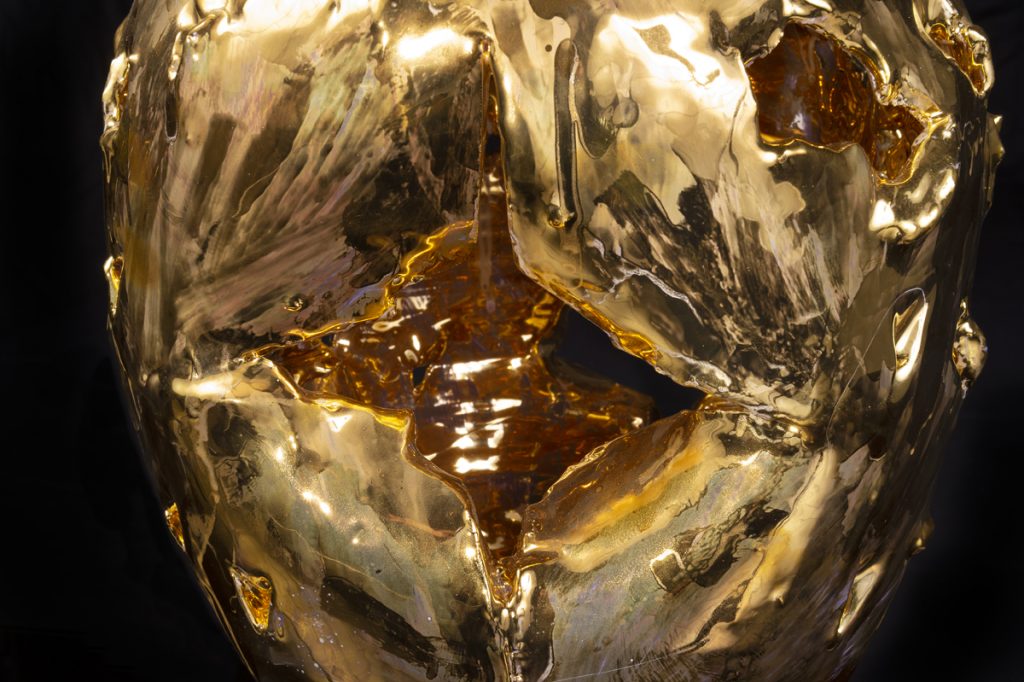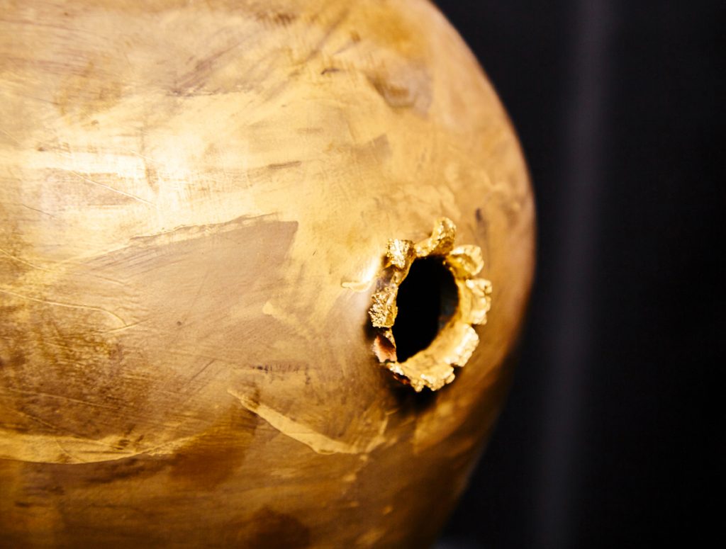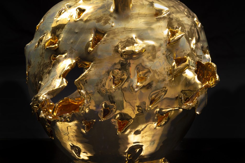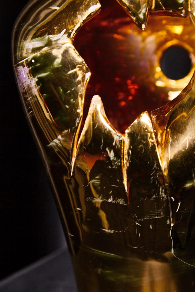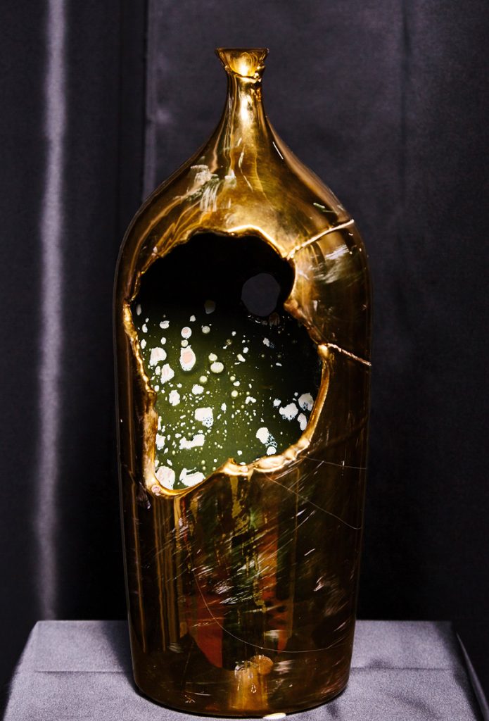Se Fontana, con i suoi fendenti, ha creato l’idea di concetto spaziale, dando un taglio netto al passato, Rivelli con i suoi “Cosmic Bullets”, con la stessa metodicità, crea un’opera nella quale i segni visivi sono proprio i vuoti, la scultura comincia lì dove la sua mano nega, sottrae, dove il vuoto spacca la forma, diventando sostanza distorsiva, che fluisce, che si de-forma, illimitatamente. Rivelli giunge così ad una completa autonomia artistica, avvicinandosi ad un’espressione in un certo senso astratta, ma peculiarmente imperniata, attraverso una connessione inestricabile, sulla cultura orientale, dove gli opposti, come il pieno e il vuoto, hanno lo stesso valore. Un territorio concettuale dove quell’assenza, prodotta da una lacerazione inevitabile, quell’incolmabile spazio interiore, insomma, l’esperienza del vuoto, diviene esercizio spirituale e lascia il campo a un fenomeno del tutto simile all’incontro con il divino. Si tratta di creare una cavità, un foro, un “cunicolo”, uno spazio vuoto dentro il sé, per lasciare che ci invada l’esperienza trascendente. Il contenuto esiste perché ci sia un contenitore, il contenitore esiste per accogliere un contenuto.