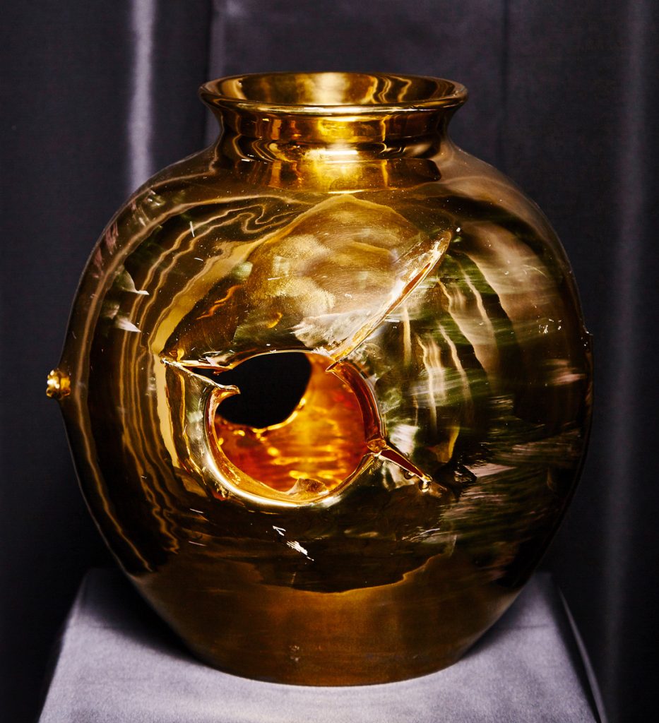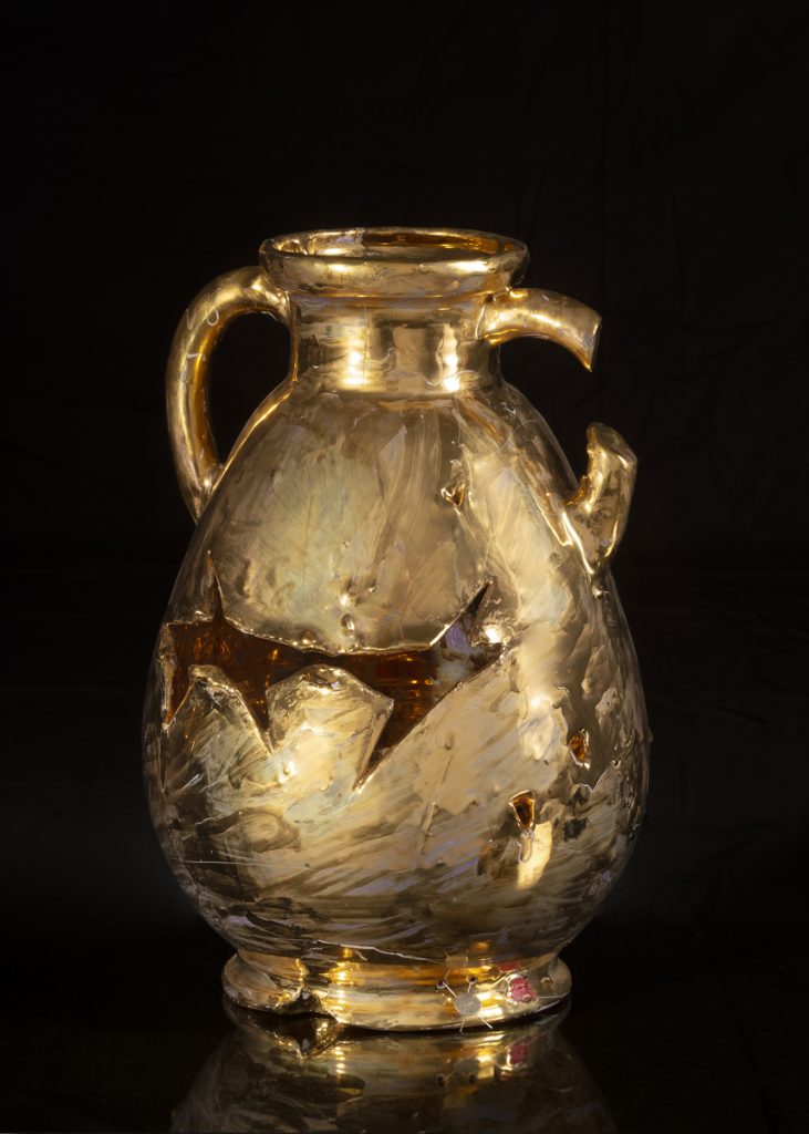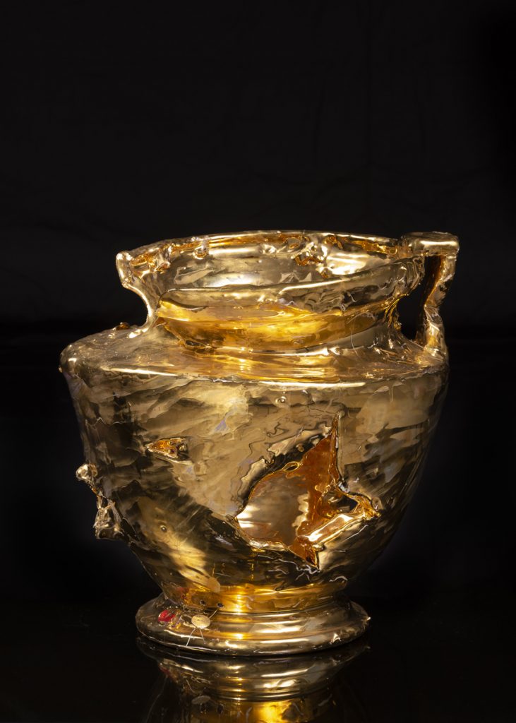 L’opera che ne risulta è data dal conflitto tra materia e spirito, non c’è l’uno senza l’altro, indivisibili, necessari, inevitabili, eppure così profondamente diversi, opposti, l’uno l’estremo dell’altro. Il contrapporsi, dunque, tra pieno e vuoto rende unico l’incontro tra i due, incontro apparentemente impossibile eppure così armonico e assolutamente reale. Da questa congiunzione potrà finalmente emergere una diversa percezione del nostro animo. E il dolore, che crea un vuoto, completa l’esperienza dell’essere vivi. Un vuoto, dunque, che racchiude il tutto, che trattiene in sé il possibile, il potenziale realizzabile. Il vuoto è coincidente con il tutto è la libertà del tutto, è lo spazio della possibilità. Un vuoto reale, in quanto assenza scatenante, che libera la verità. La scultura viene annullata, la bellezza alterata, liberata dal peso di se stessa, mentre, nello stesso tempo, ci libera dal peso di noi stessi.