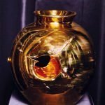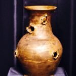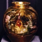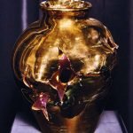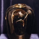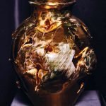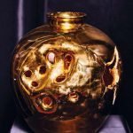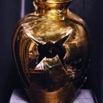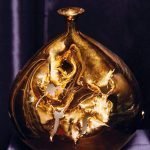 I vasi dorati di Nicola Rivelli vogliono essere il simbolo della necessaria trasformazione dell’individuo all’esposizione ai mali cosmici, un tentativo di dare forma all’emozione frutto di un dramma.